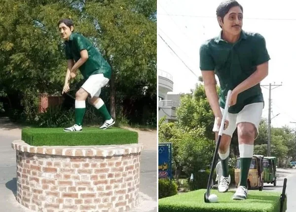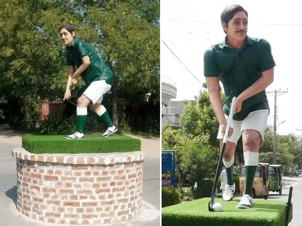 یادگاری مجسمہ سے ہاکی اور گیند چوری ہونے کے بعد سول سوسائٹی نے ایک عارضی ہاکی اور گیند بھی لگادی تھی۔